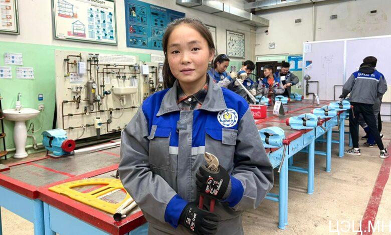 Барилгын гол судас сантехник гэж хэвлүүхэн ярих охин хөвгүүдтэй мөр зэрэгцэн Дархан политехникийн коллежид суралцаж байна. Хөвгүүд л суралцдаг мэргэжил чи чадахгүй гэсэн ахынхаа үгийг сонсоод би амжилттай суралцаж чадна гэж энэ мэргэжлийн ангид элсэж байсан гэж бидэнд ярив.