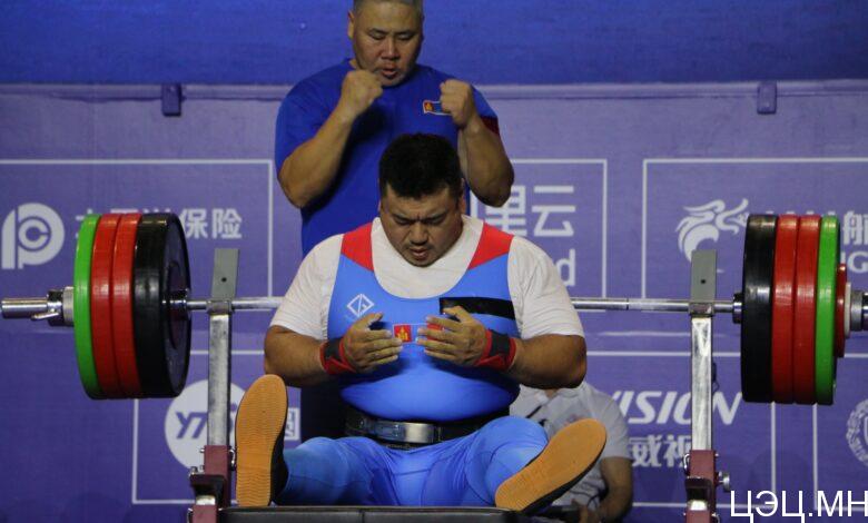 БНХАУ-ын Ханжоу хотод Азийн зуны спортын IV пара наадам зургаа дахь өдрөө болж байна. Өнөөдөр пауэрлифтингийн эрэгтэйчүүдийн хэвтээ шахалтын 107 кг-ын жинд гавьяат дасгалжуулагч Д.Баттулга, дасгалжуулагч Б.Энхбаярын удирдлага дор “Токио-2020” паралимпын аварга, “Рио-2016” паралимпын хүрэл медальт, ДАШТ-ий алт, мөнгөн медальт, дэлхийн цомын алт, мөнгөн медальт, Ази тивийн аварга, Хөдөлмөрийн баатар, гавьяат тамирчин Энхбаярын Содномпилжээ өрсөлдлөө.