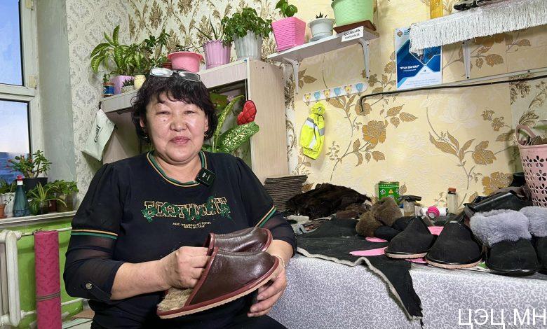 Дархан нэхий компанид эсгүүрчин байсан тэрээр тэтгэвэр суухдаа оёдол сонирхож даавуун тор, машины хучлага, морины нэмнээ оёж эхэлжээ. Дээшээ харсан бүтээгдэхүүн гэж билэгдэн нэхий тавчик оёж Нарантуул зах дээр бөөндөж зардаг байжээ. Худалдан авагчид олон болохын хирээр урамтай ураглаж гэрийн шаахай хийдэг ажиллаа эрчимжүүлж жижиг ажлын өрөө түрээсэлж орон нутагтаа арьсан гадартай, нэхий дотортой тавчик оёж худалдаалж эхэлсэн байна.