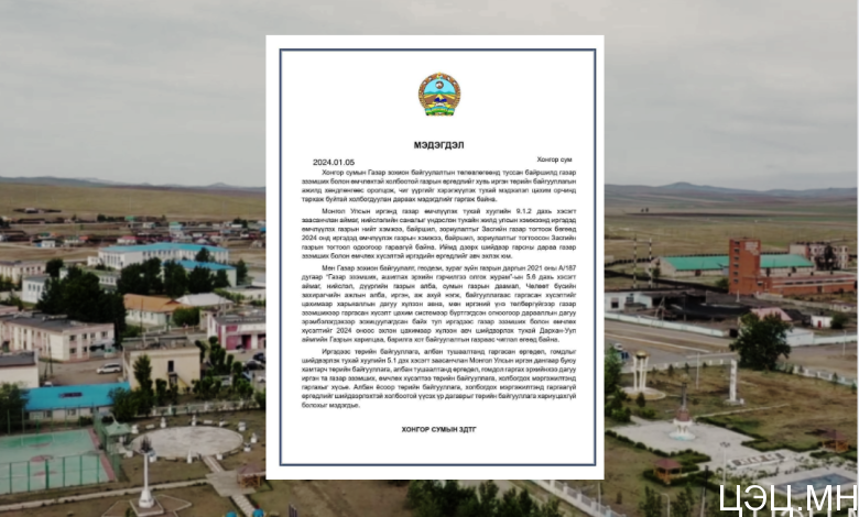 “Хонгор сумын Газар зохион байгуулалтын төлөвлөгөөнд туссан байршилд газар эзэмших болон өмчлөхтэй холбоотой газрын өргөдлийг хувь иргэн төрийн байгууллагын ажилд хөндлөнгөөс оролцож, чиг үүргийг хэрэгжүүлэх тухай мэдээлэл цахим орчинд тархаж буйтай холбогдуулан дараах мэдэгдлийг гаргаж байна.
